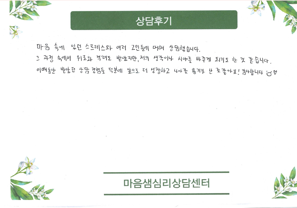 20대 성인상담후기입니다
