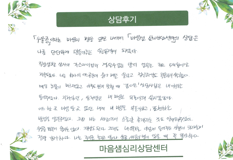 30대 성인상담후기입니다