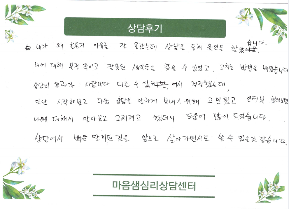 '내가 왜 힘든지 이유를 잘 몰랐는데 상담을 통해 원인을 찾았습니다