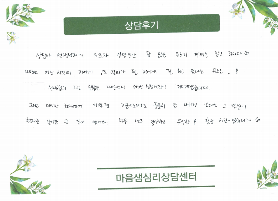 성인상담(40대 여) 전국민마음투자 지원사업 후기입니다