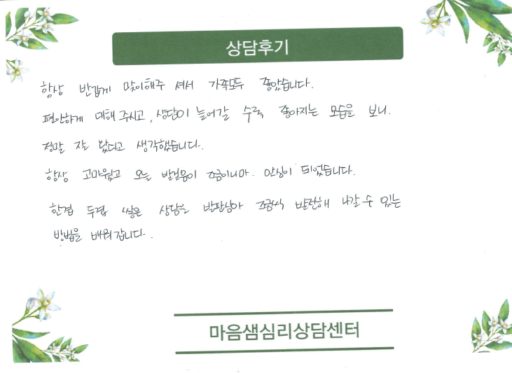 초등학생(전국민마음투자지원사업) 상담후 어머니 후기입니다
