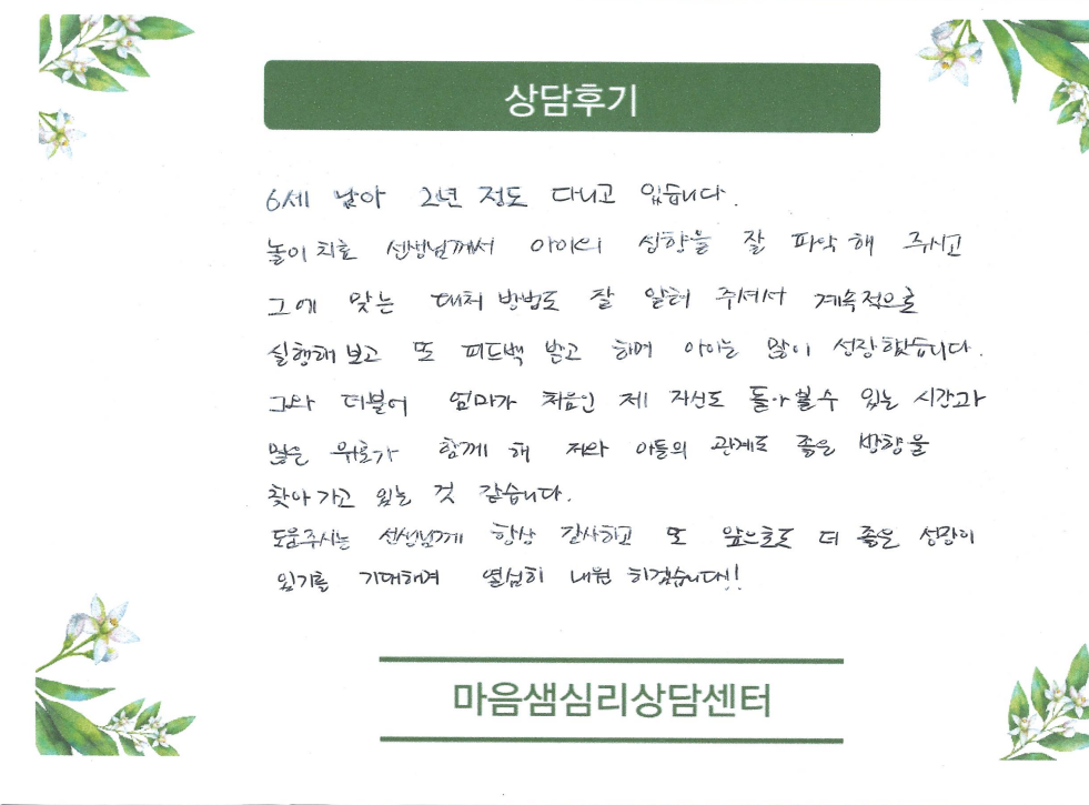 6세 놀이치료 상담후기입니다